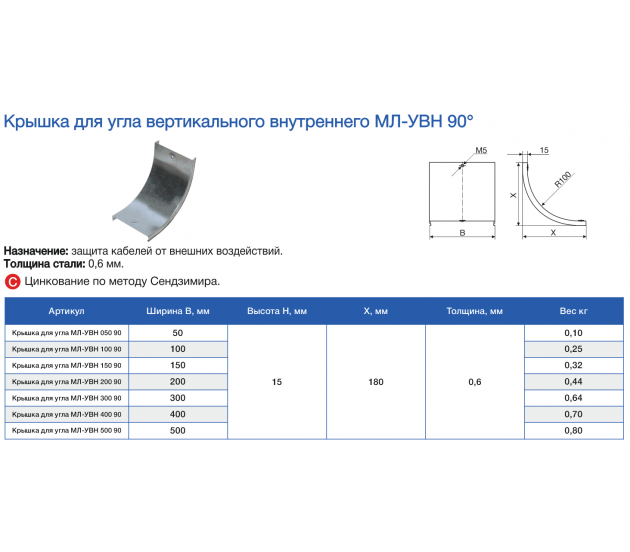 Крышка на вертикальный угол МЛ-УВН 90 (внутренний)